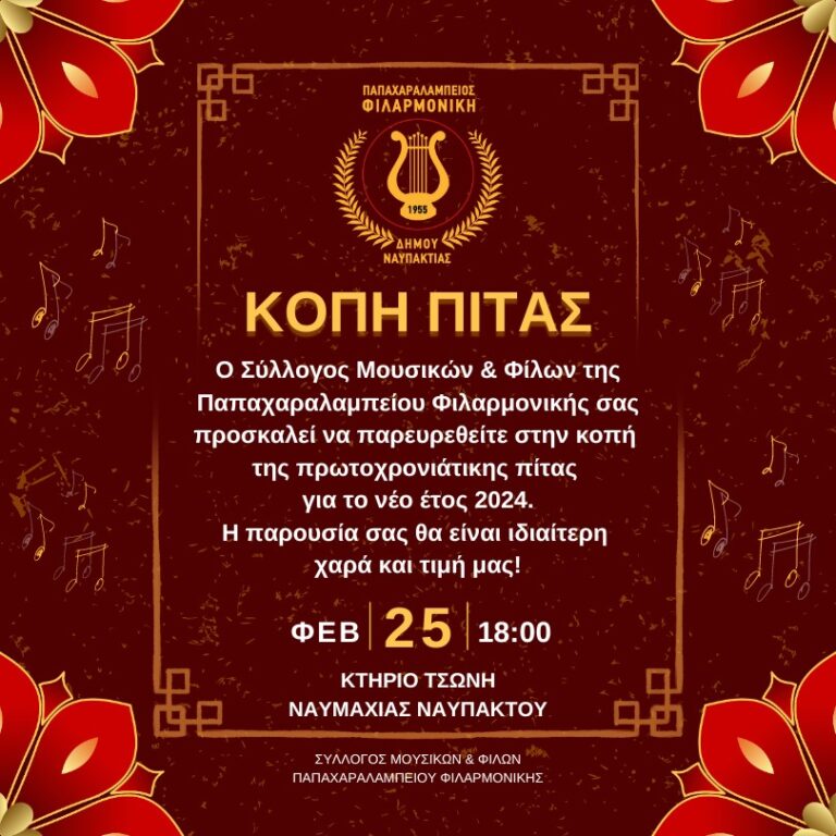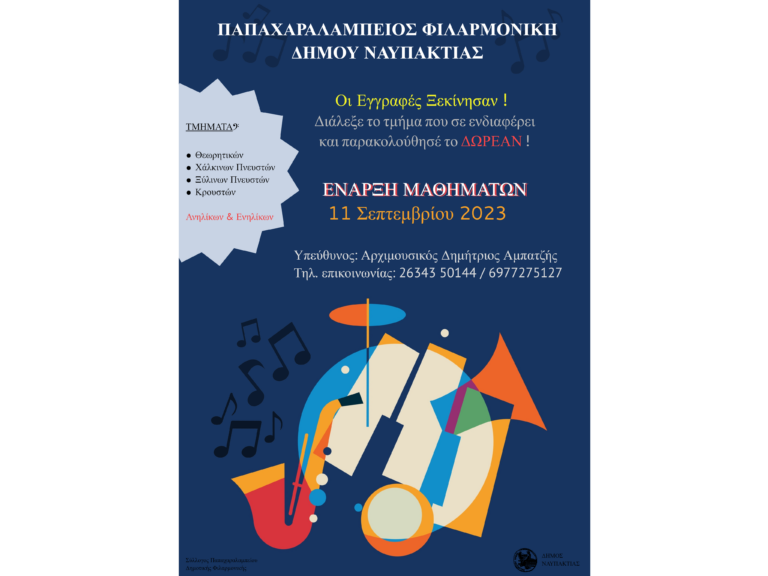 Εδώ και 70 χρόνια με επιβλητική παρουσία στον χώρο της μουσικής, η Παπαχαραλάμπειος Φιλαρμονική του Δήμου Ναυπακτίας συνεχίζει να προσφέρει ανεκτίμητες στιγμές εμπειρίας. Μέσα από ένα εξελισσόμενο μουσικό υπόβαθρο, διαμορφώνει έναν κόσμο όπου οι νότες γίνονται γέφυρες που ξεπερνούν πολιτισμικές διαφορές ή διακρίσεις.